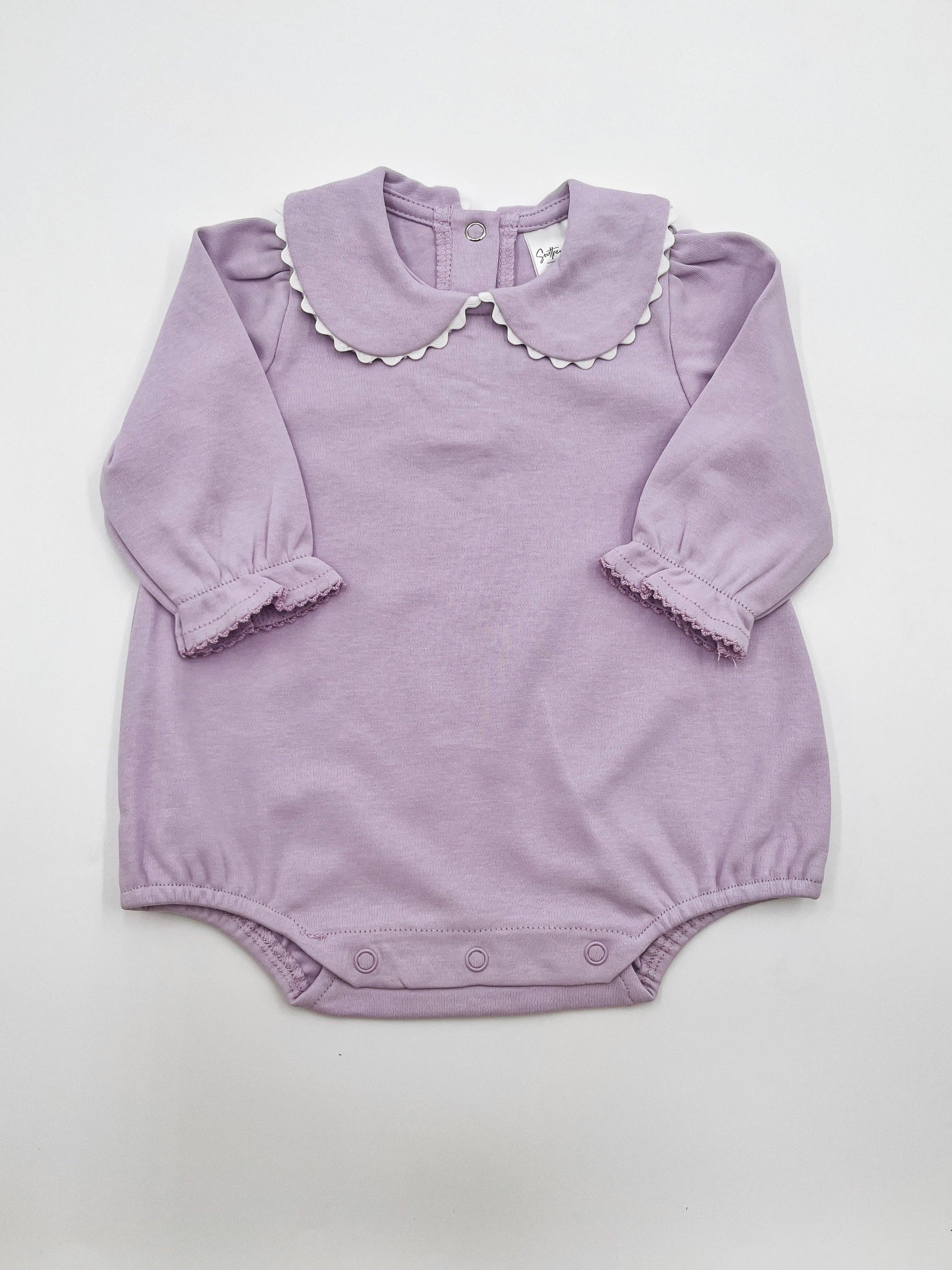 Our long sleeve bubbles are here! These are made from a cotton/spandex blend and just waiting for those little blessings! Sweet little details include a ricrac edge on the collar and picot trim on the sleeves.